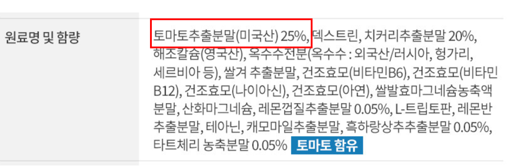 원재료 - 미국산은 맞지만, 토마토의 원산지는??